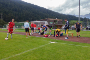 Wir trainieren jeden Freitag beim Chilbiplatz. Nach individuellem Einwärmen und gelegentlichen Pass- oder Schussübungen werden zwei Teams gebildet und ein oder mehrere Trainingsspiele durchgeführt. Dies sind lockere „Mätschli“ bei welchen oft vier gegen vier gespielt wird.